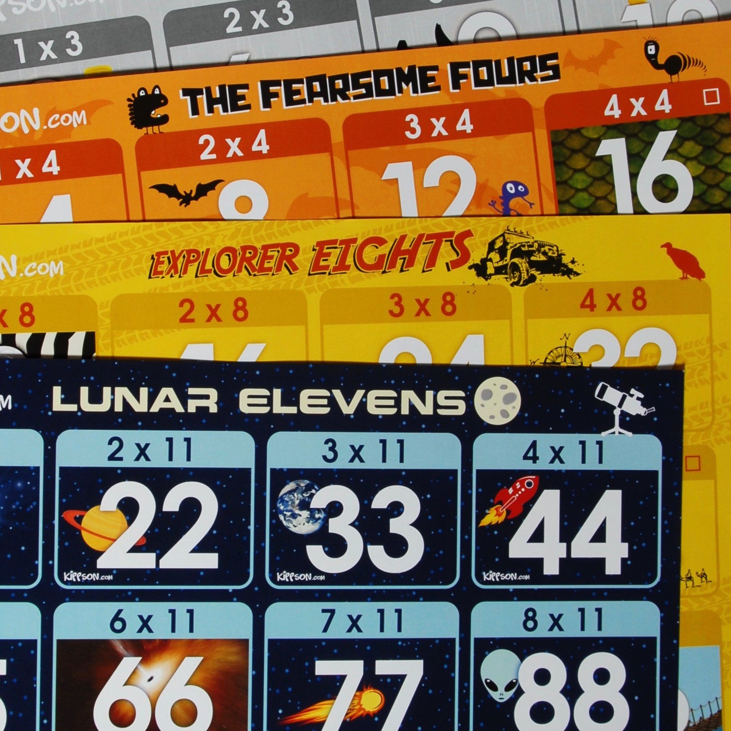 These glossy times tables posters are just the right size to fit on your fridge, or slip onto a gap on the wall. They provide an attractive quick reference guide that would brighten any room.